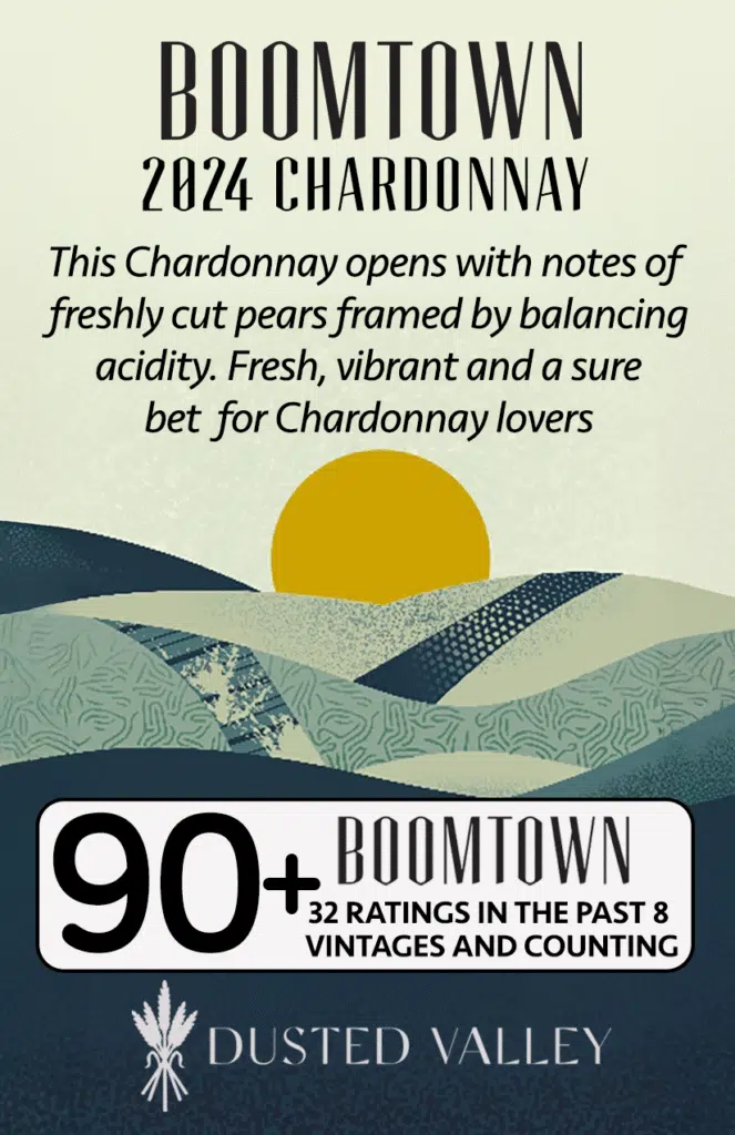 - The Boomtown 2022 Chardonnay hails from several cool-climate vineyards in the Yakima Valley.