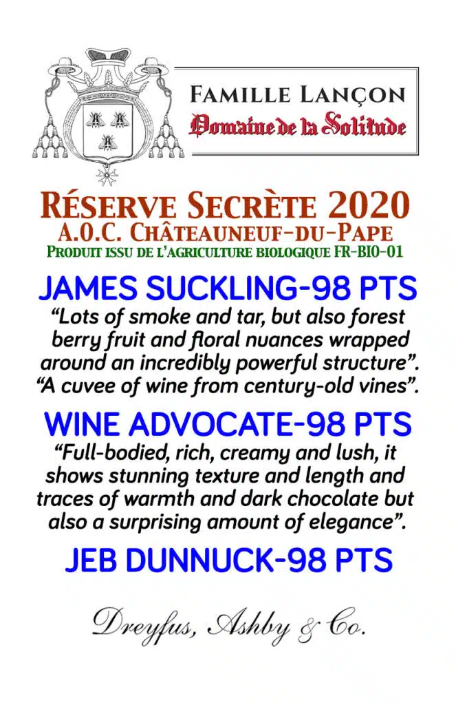 - These two great Terroirs are always vinified separately but only the great years, 5 vintages of the last 10 Secret Reserve is created.
