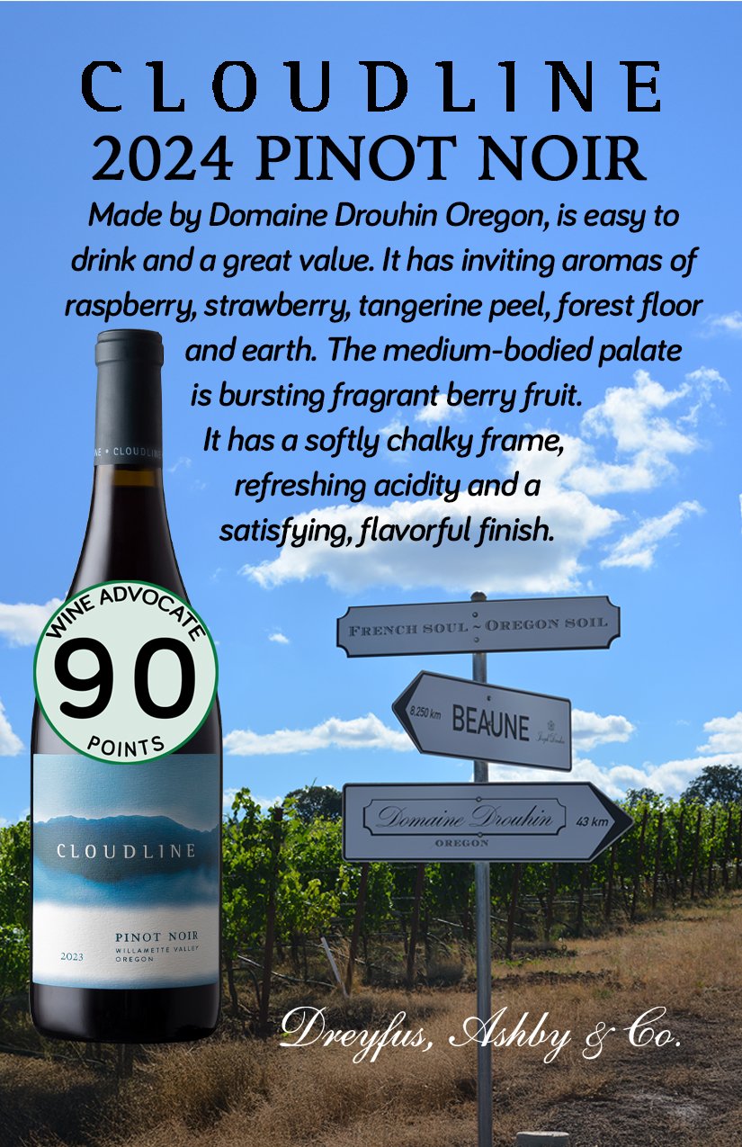 The 2024 Pinot Noir from Cloudline, made by Domaine Drouhin Oregon, is easy to drink and a great value.