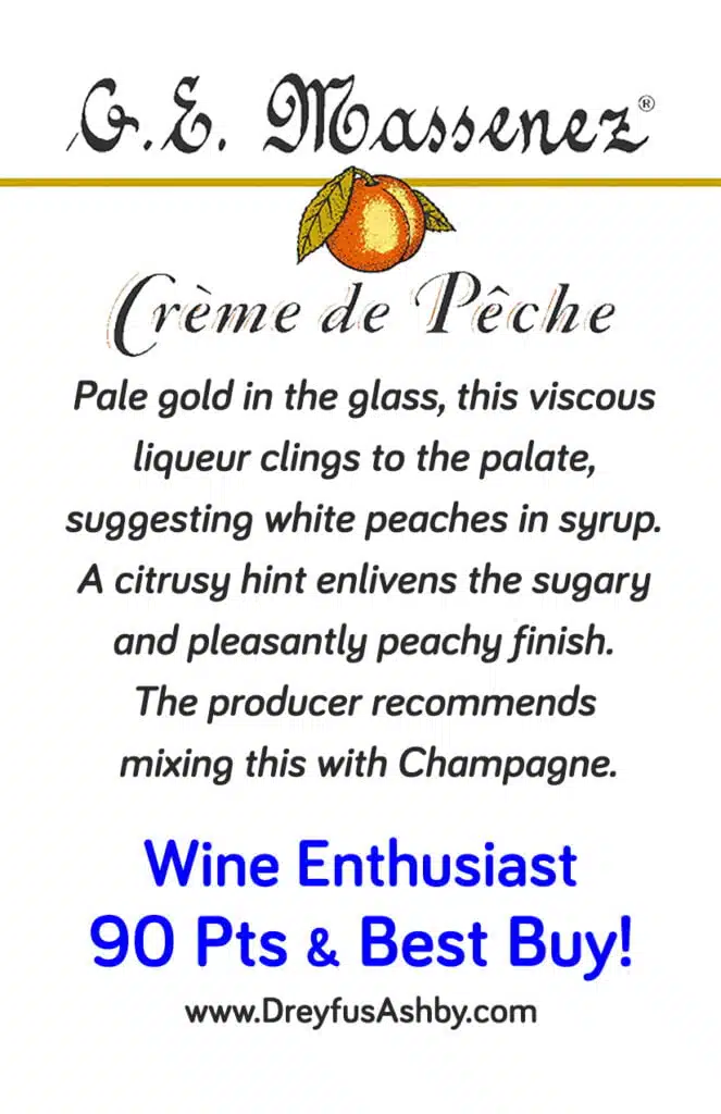 Massenez’s Peach Liquor has remarkably subtle aromas and a delicate bouquet. A faithful reflection on the smoothness of a peach.