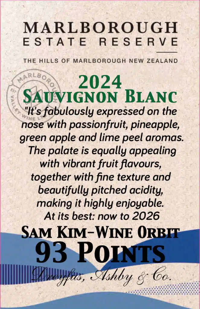 - The fruit for this wine was selected from vineyards across Marlborough’s sub regions, including the Wairau Valley.