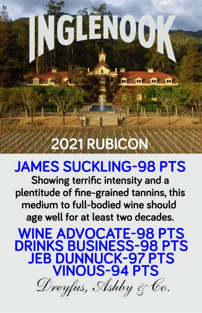 This wine showcases a tapestry of darker red fruits, with prominent notes of pomegranate and cherry, creating a rich and inviting profile. Its exceptional structure and impressive length contribute to a robust and satisfying tasting experience. The velvety tannins are seamlessly integrated, enhancing the overall smoothness of the wine. The influence of oak adds to the complexity, offering a seamless vanilla character that gracefully complements the fruit elements. Notably, in the tradition of Rubicon wines, this blend is known for its historical complexity, where no single variable stands out, but rather, the sum of its parts creates a truly captivating and multifaceted expression.