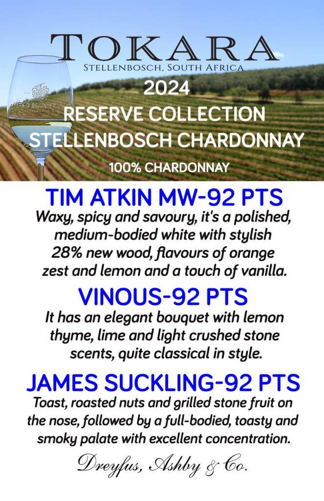- This 100% Chardonnay is made from grapes grown on Tokara’s Stellenbosch farm on the slopes of the Simonsberg Mountain Range.